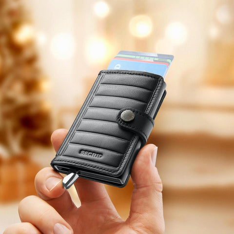 Un meccanismo brevettato permette di accedere rapidamente e in totale sicurezza alle carte. Questo sistema innovativo le protegge da piegature, rotture e tentativi di comunicazione RFID non autorizzati, assicurando praticità e massima protezione