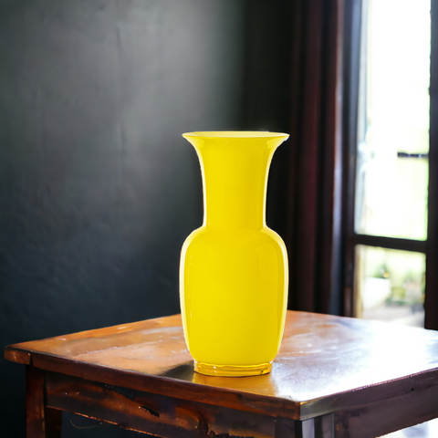 Realizzato per la prima volta nel 1932 dalla mente di Paolo Venini, il vaso Opalino si presenta in tutta la sua raffinatezza ed eleganza. La tecnica degli opalini è ottenuta dalla lavorazione del lattimo, un vetro bianco opaco inventato a Murano intorno alla metà del XV secolo allo scopo di imitare le prime porcellane di gran moda in Europa, sovrapponendo “incamiciando” il vetro lattimo con un vetro o più vetri sottili trasparenti e colorati, ottenendo splendidi oggetti dai colori intensi e accesi. Caratteristica la base d'appoggio in cristallo sciabolato, che impreziosirà i tuoi ambienti con raffinatezza e classicità. La collezione Ginkgo Biloba è un tributo alla bellezza e alla rinascita della natura: ispirata all’omonimo albero, una pianta unica e tra le più antiche ancora sulla Terra.