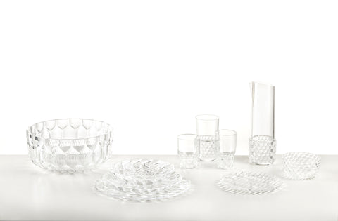 "The Jelly vases and centerpiece plates are part of the new series of accessories with which Kartell, in its continuous search for new tactile and aesthetic effects, once again demonstrates its technological know-how in experimenting with surface texturing. Ideal for any room of the house and for different uses, the particularity of this series consists in the material conformation of the surface which enhances its apparently gelatinous soul, like the name which inspires it and which recalls the shapes used in confectionery, and the solidity of the plastic material with which is accomplished."