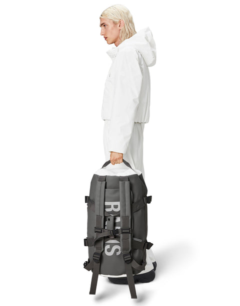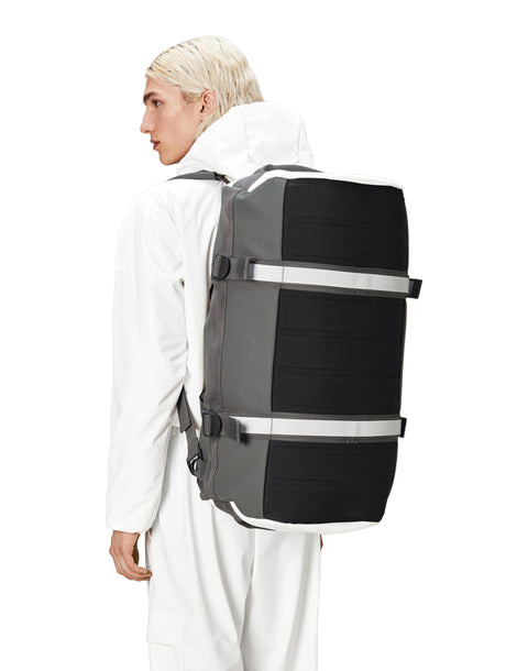 Rains Duffel Bag Grey Mix è una borsa ad alta funzionalità progettata per i viaggi. Questa borsa da viaggio si caratterizza per la sua forma tubolare, l'ampia apertura per facilitare l'imballaggio e le cinghie avvolgenti. Aprendo la patta principale si scopre un ampio scomparto principale con una tasca laterale in rete. La parte inferiore della patta è inoltre dotata di due tasche in rete con cerniera. La Texel Duffel Bag è dotata di una tasca laterale nascosta per passaporti, chiavi e altri piccoli oggetti essenziali, di una base rinforzata per garantire durata e stabilità e di cinghie di compressione laterali che aiutano a mantenere il contenuto in posizione. La Duffel Bag può essere trasportata in vari modi grazie alle resistenti cinghie con maniglia e alle cinghie posteriori imbottite e regolabili.