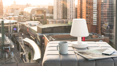 Edison The Petit is the portable night lamp you've always dreamed of: a romantic touch for your balcony or a practical lamp for your desk. We have also applied LED technology to Edison The Petit. Now the lamp lights up from head to toe with 3 different settings. You can light up your life 6 to 24 hours before recharging.