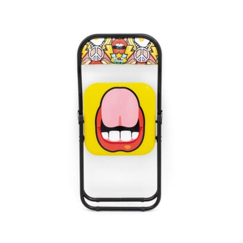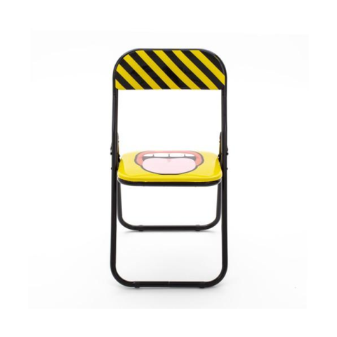 Seletti blow chair these folding chairs have a PVC padded seat and back. the structure is in metal. compact once folded, it can be easily stored without taking up space. it is both comfortable and light, it will be perfect for welcoming last-minute guests. The unique creativity of Studio Job decorates the folding chairs with different images: Flash, Hot Dog, Egg, Mouth, Peace, Grass. Folding chair Design: Studio Job Material: metal, PVC