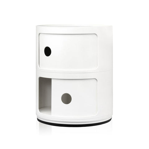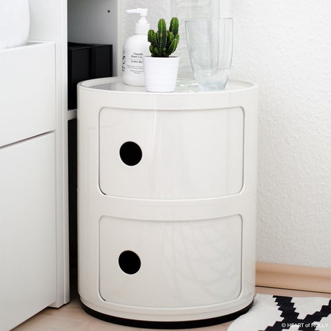 The modular elements have been designed to respond to different needs of use and live in every room of the house: in the bathroom, bedroom, kitchen or living room. The design solution that animates the Componibili system is the elementary and solid vertical overlapping of the individual pieces which, by means of a simple joint, go to compose practical container furniture. Available in round and square shapes, the Componibili can be placed on wheels. Flexible, functional, practical, the Componibili have been in production for forty years and have received many awards for the significance and innovation of the project (they are also exhibited at the Museum of Modern Art in New York and at the Center George Pompidou in Paris).