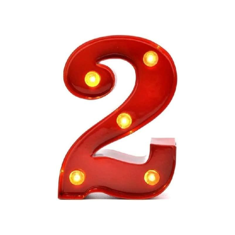 Pusher Mini Las Vegas light up decorations for the home, number 2, metal, red. Battery operated: 3 x RL44 included On/Off button and predisposition to hang it also on the wall. For internal use only.