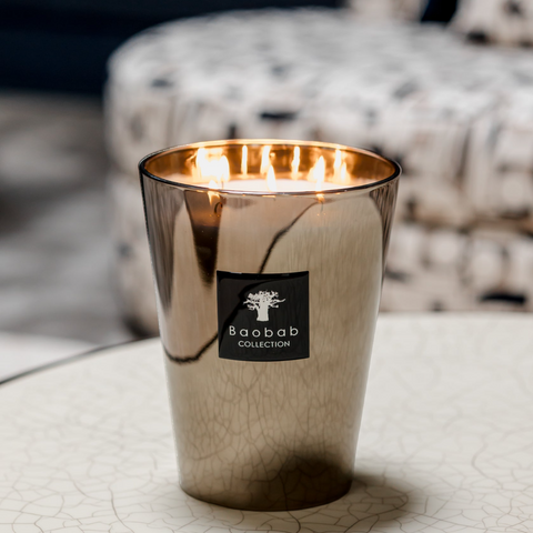 La candela profumata Platinum ha visto un restyling che ne ha ridotto le dimensioni e ha aggiunto un monogramma in platino, decisamente in linea con l'identità del nostro brand.