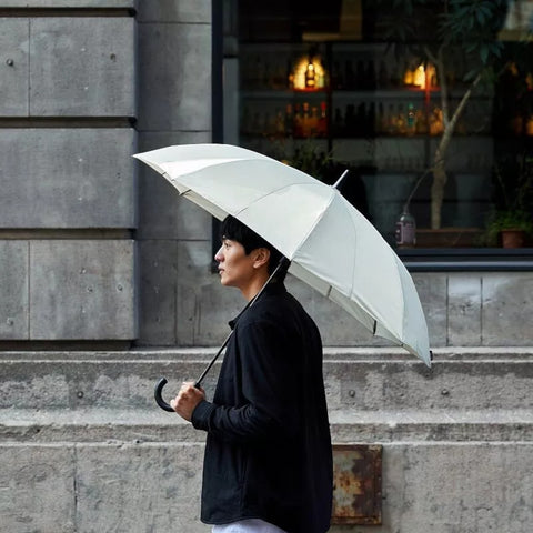 L'ombrello Shupatto adotta un'esclusiva struttura a spirale che consente di chiudere l'ombrello senza dover toccare il tessuto o utilizzare una cintura.