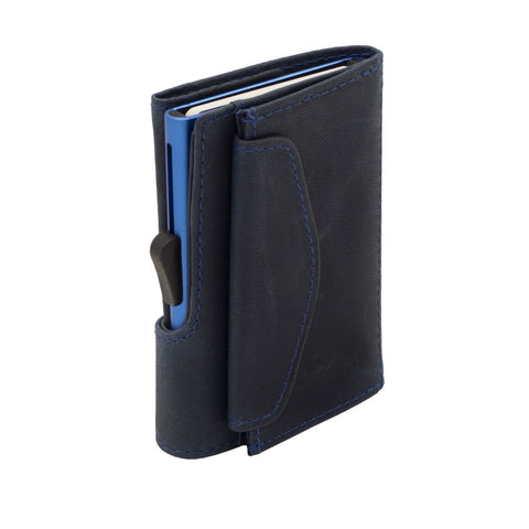 PORTAFOGLIO SINGLE COIN MONTANA VEGETABLE TANNED LEATHER C SECURE BLUE