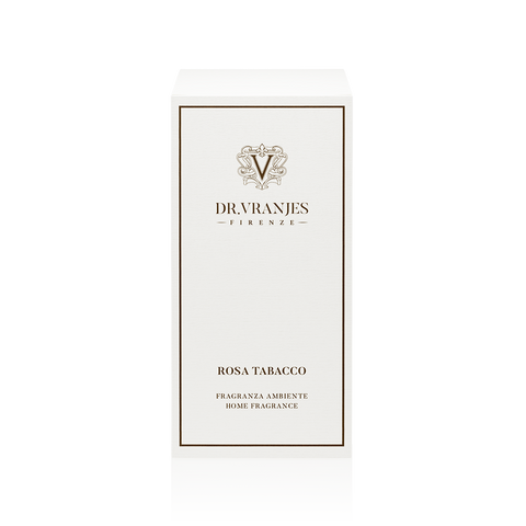 The Rosa Tabacco room fragrance was born from the encounter between the Rose, queen of flowers with an intensely floral and romantic personality, and Tobacco, an animalic essence with a musky and sensual character