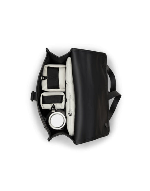 All'interno, lo zaino offre una tasca per laptop, un ampio scomparto principale e una tasca esterna nascosta sul pannello posteriore, perfetta per riporre il telefono o altri piccoli oggetti. Realizzato con il materiale PU distintivo di Rains, lo zaino è progettato per garantire resistenza, durabilità e una sensazione di morbidezza al tatto, mantenendo al sicuro i tuoi effetti personali.
