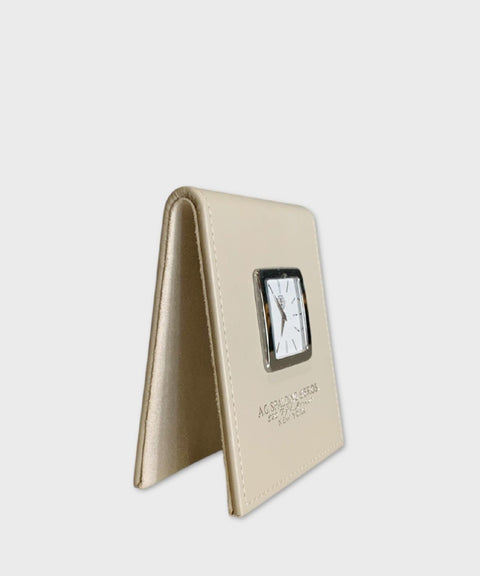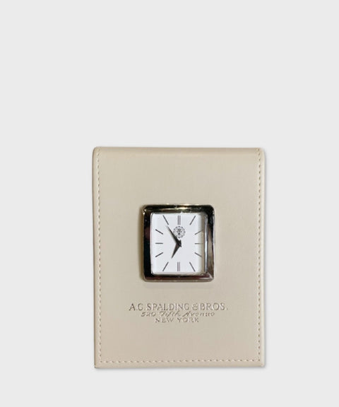 Orologio da scrivania di design in pelle bianca – Spalding & Bros