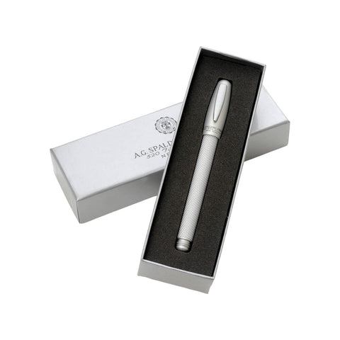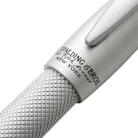La stilografica Crest Silver di Spalding è un omaggio alla scrittura tradizionale, con uno stile essenziale e sofisticato. Il corpo in alluminio e ottone dona solidità e leggerezza, mentre il design compatto la rende perfetta da portare sempre con sé.