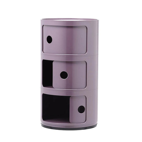 Vera icona design, il celebre Componibili si appropria di nuovi colori vivaci, profondi ed eleganti: verde kaki, blu petrolio e viola. Nel 1968 la stilista Anna Castelli Ferreri, moglie del fondatore di Kartell, crea il famoso Componibili. Questo cilindro di plastica stampata con le sue linee semplici e funzionali è un simbolo della rottura che si è verificata nel design durante gli anni’60. Pop, democratico, accessibile, pratico, modulabile: questo piccolo armadietto soddisfa pienamente l'esigenza di una nuova società emergente. Componibili conosce presto un crescente successo grazie alla sua estrema funzionalità. Compatto e versatile, si adatta in qualsiasi stanza della casa. Ideale come comodino in camera da letto, tavolino in salotto, piccolo mobiletto da bagno o in cucina, sgabello se necessario ... Prodotto per quasi mezzo secolo, Componibili si è affermata nel corso dei decenni come un vero e proprio classico del design. Vincitore di numerosi premi, è esposto al New York Museum of Art e nel Centre Pompidou di Parigi