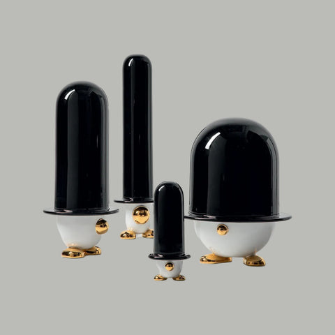 Mr. James, progettato dal talentuoso designer Matteo Bianchi, è una scultura in ceramica che affonda le radici nella tradizione e nell'innovazione. Ispirata alla bombetta britannica, questa testa scultorea è un simbolo di eleganza e riflessione, capace di custodire e nutrire idee e progetti nel corso del tempo.