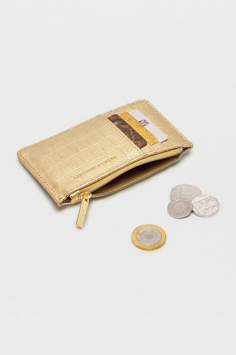 Finished in croc-effect metallic gold, this pretty and practical card purse is the ideal accessory for carrying all your essentials together in style.