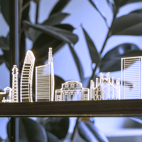 Lo skyline in plexiglass luminoso della tua città, dove vuoi.