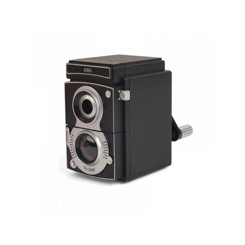 Temperamatite vintage camera. Pratico temperamatite a forma di vecchia fotocamera.