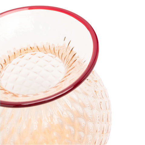 Ogni vaso è finemente rifinito a mano, con un delicato filo colorato applicato a caldo che avvolge il motivo decorativo, esaltando la texture e lasciando spazio alla magia del design.