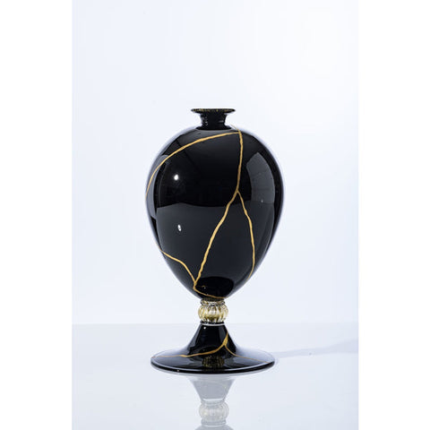 Venini Vase Veronese Kintsugi black with gold dust decoration Limited Edition in Murano glass 600.17 is designed by Vittorio Zecchin. The lines of the Veronese vase are pure elegance, the same elegance that its creator, Vittorio Zecchin, saw in the image of a vase that appears in the famous "Annunciation of the Virgin" painted by Veronese. First created in 1921, this vase is a timeless style icon.