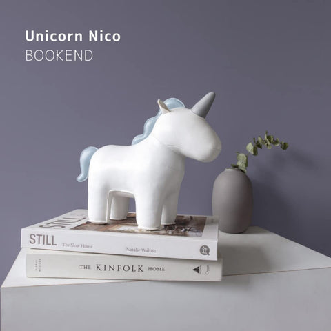 Il reggilibri Unicorn Nico di Zuny combina funzionalità e fantasia in un design ispirato all’unicorno, simbolo di eleganza e meraviglia. Realizzato a mano in superfibra e poliestere, è resistente, vegan e curato nei dettagli. Perfetto per dare un tocco fiabesco a librerie, scrivanie o spazi creativi.